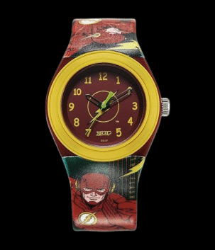Zoop Justice League Flash Analog Watch with Red Dial & Multicoloured Strap for Boys Kids, from House of Titan c4048pp55