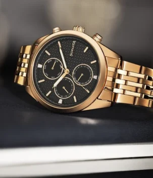 Sonata Magna Quartz Multifunction Black Dial Rose Gold Stainless Steel Strap Watch For Men 7155wm01